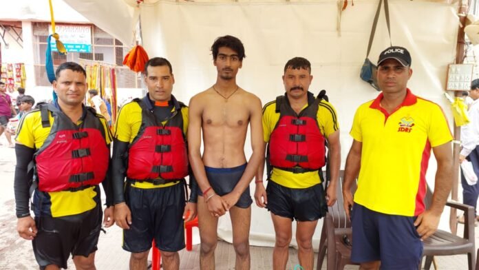 लेकिन तभी गंगा घाट पर तैनात SDRF (राज्य आपदा प्रतिक्रिया बल) का एक जवान बिना एक पल गंवाए हरकत में आता है और फौरन नदी में छलांग लगा देता है। जवान तेजी से तैरते हुए युवक की ओर बढ़ता है, और तभी एक और SDRF जवान उसकी मदद के लिए पानी में उतर जाता है। इसी बीच SDRF की एक गश्ती नाव भी मौके पर पहुंचती है।