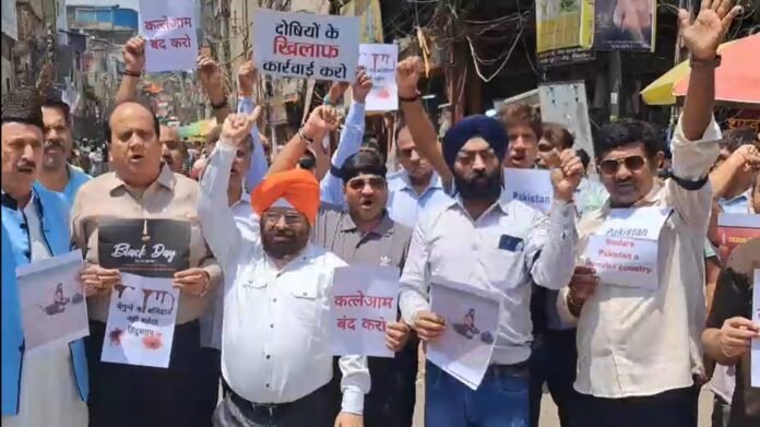 नई दिल्ली — जम्मू-कश्मीर के पहलगाम में हाल ही में हुए आतंकी हमले के विरोध में दिल्ली के सदर बाजार में व्यापारियों ने उग्र प्रदर्शन किया। इस हमले में कई निर्दोष पर्यटकों की मौत हो गई थी, जिससे देशभर में आक्रोश की लहर फैल गई है। इसी को लेकर सोमवार सुबह फेडरेशन ऑफ सदर बाजार ट्रेड्स एसोसिएशन के नेतृत्व में सैकड़ों व्यापारियों ने कुतुब रोड चौक पर एकत्र होकर विरोध जताया।