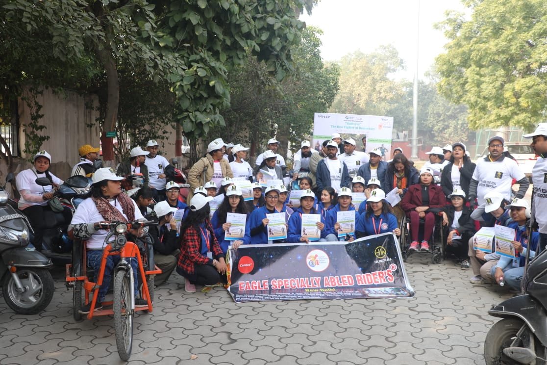 नई दिल्ली, 19 जनवरी: दिल्ली में आगामी विधानसभा चुनावों की तैयारियों के तहत एक विशेष जागरूकता अभियान का आयोजन किया गया, जिसमें दिव्यांगजन के नेतृत्व में स्कूटी और बाइक रैली निकाली गई। इस रैली का मुख्य उद्देश्य दिल्ली के मतदाताओं, विशेष रूप से दिव्यांग मतदाताओं को आगामी दिल्ली विधानसभा चुनाव-2025 में मतदान के लिए प्रेरित करना था। यह रैली SVEEP (Systematic Voters’ Education and Electoral Participation) कार्यक्रम के तहत आयोजित की गई, जिसका उद्देश्य दिल्ली के नागरिकों में मतदान को लेकर उत्साह और जागरूकता बढ़ाना था।